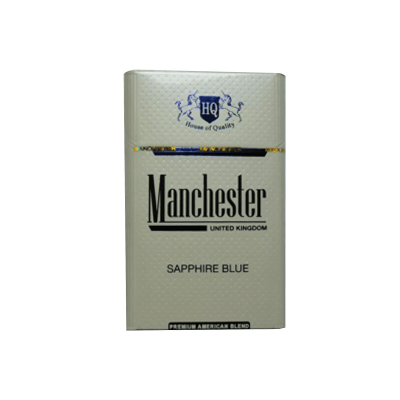 | Packaging | Light blue hard pack with silver trim, “House of Quality” crest, and “Sapphire Blue” labeling |