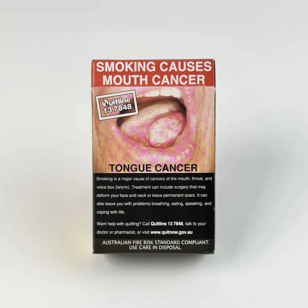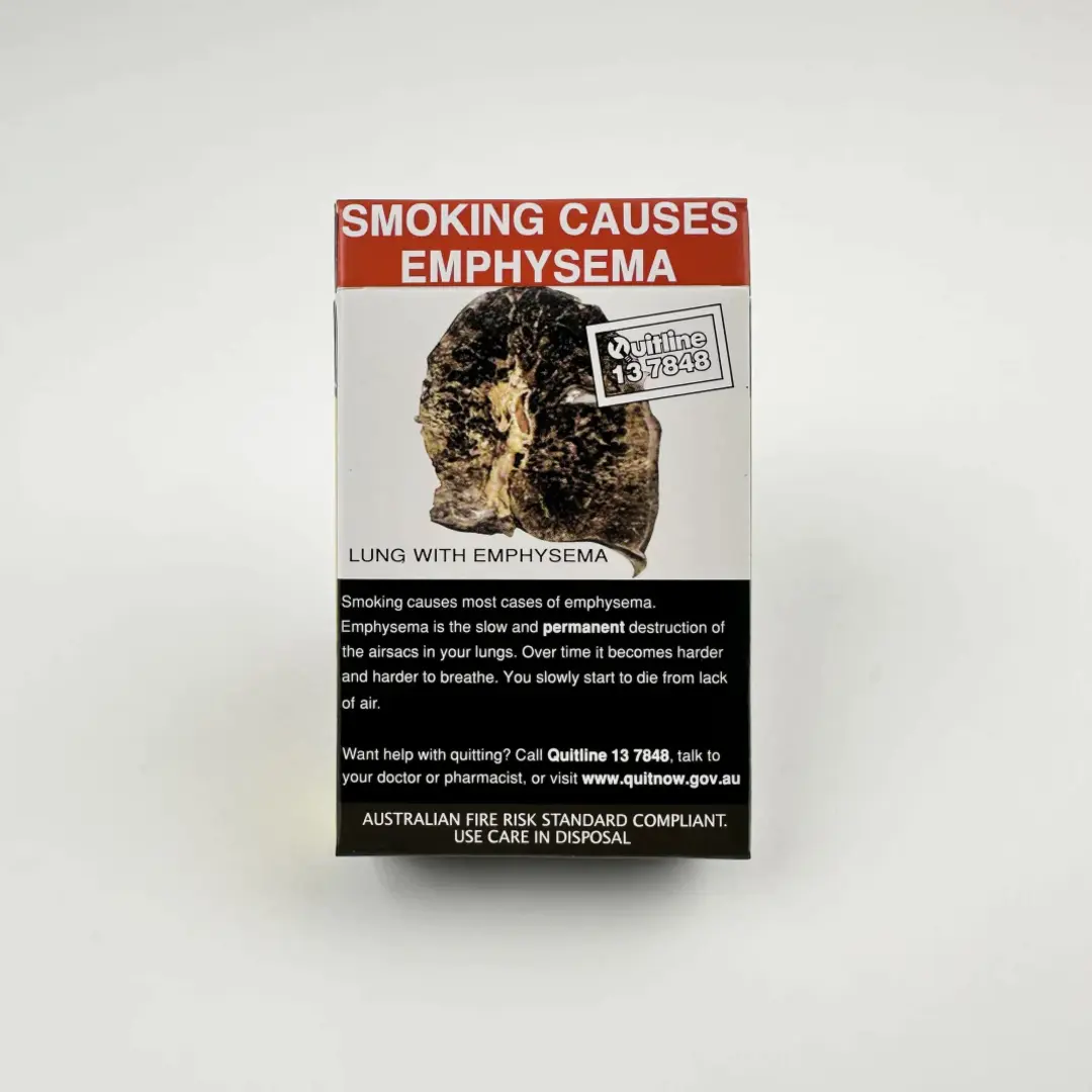 Packaging Black hard pack with mandatory graphic health warnings (Australian market variant)
